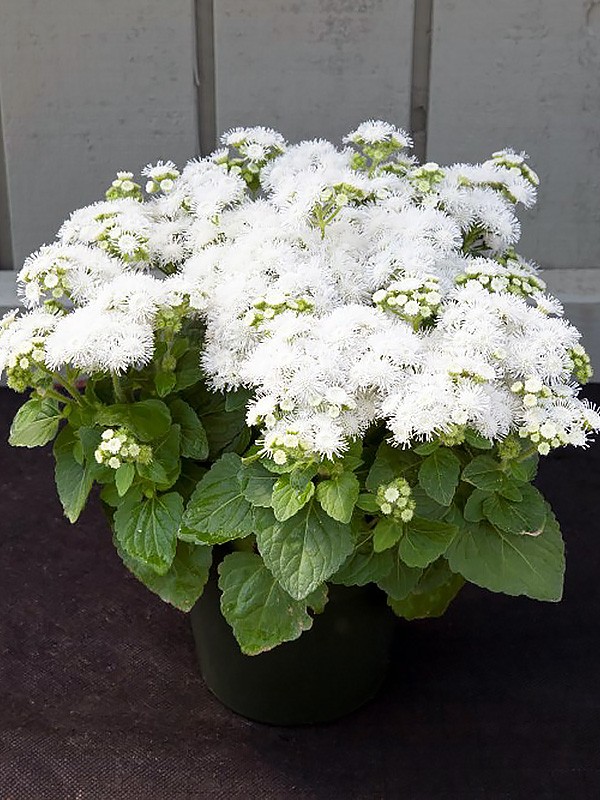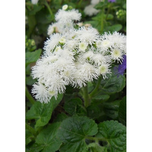 Семена агератума «Белый шар» высевают в марте — апреле на рассаду. Глубина заделки составляет 0,3-0,5 см. Семена прорастают через пару недель при температуре грунта +20 градусов. В открытый грунт рассаду высаживают по схеме 15х20 см, когда минует угроза заморозков. Агератум «Белый шар» — это однолетняя очень теплолюбивая культура, которая в высоту достигает до 55 см. Кустарник отличается шарообразной формой и обильным цветением. С июля до заморозков на растении раскрываются плотные соцветия белого окраса. Однолетник  прекрасно смотрится в любом уголке сада и подходит для выращивания даже неопытным садоводам.