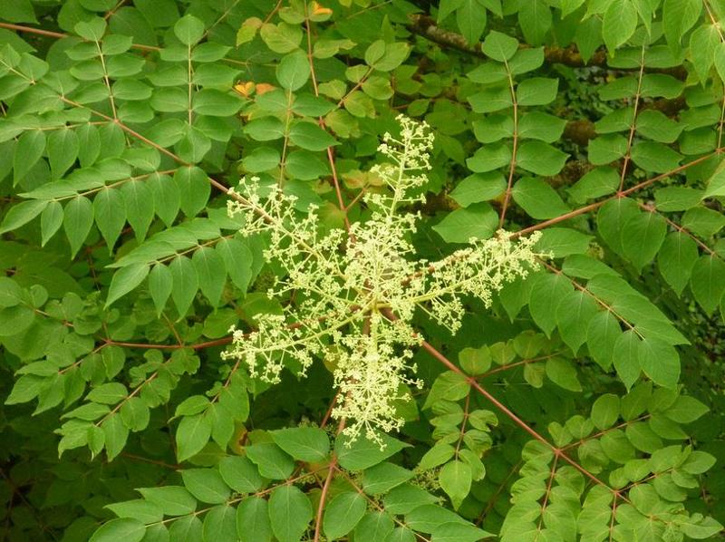 Саженцы Аралии высокой (Aralia elata) – быстрорастущее лиственное дерево или кустарник высотой до 3 м. Форма кроны и крупная сложно-перистая листва напоминает тропические культуры. Поэтому растение интересно и необычно смотрится в любых древесных композициях, а также как самостоятельное украшение садов и парковых зон. Окраска листвы Aralia elata зеленая. В период цветения, которое приходится на июнь, дерево покрывается соцветиями мелких белых цветов со слабым приятным ароматом. В первые 5-6 лет после посадки культура не цветет. Ветвистая система развивается только при повреждениях ствола. Чаще аралия высокая растет прямо.