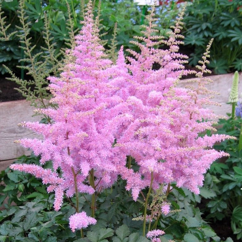 Астильба сорта Ice Cream (Айс Крим) относится к гибридной группе. Данный сорт вырастает до 60 см в высоту. Пышные большие соцветия просто искрятся своим сиренево-розовым цветом. Они имеют форму ромба, довольно плотные. Растение было выведено относительно недавно – в 2011 году. Это декоративное многолетнее растение с пышными соцветиями. Листья сложные, ажурные по краям и блестящие. Цветы насыщенного оттенка красиво сочетаются с цветом листьев, собраны в соцветия вытянутые метелки, источают легкий приятный запах. Оно станет украшением любого цветника независимо от его стилистики. Отлично смотрится в тени хвойных растений, кроме того хорошо произрастает в такой искусственно созданной тени. Астильба украсит и миксбордеры рядом с фонтаном или другим водоемом.