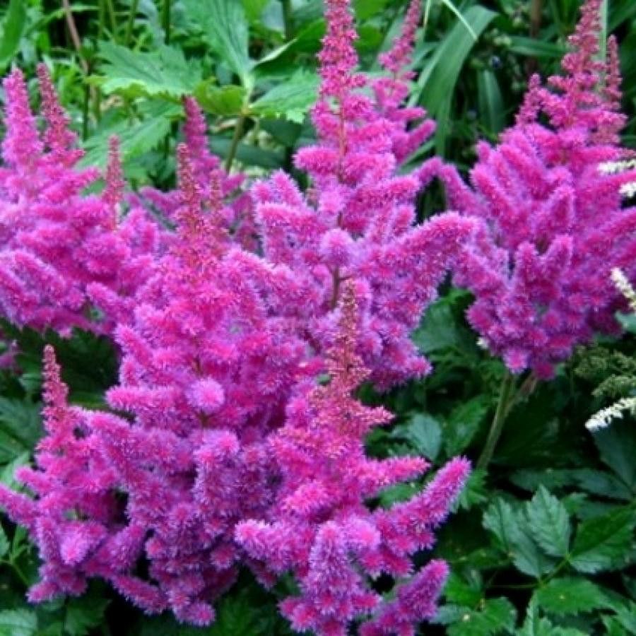Рассада астильбы китайской Пумила (Pumila) вырастает в строгое, но привлекательное растение, характерное своей декоративной блестящей листвой и множеством воздушных сиреневых цветков на длинных черешках. Темные бутоны слегка бледнеют после распускания. Длина соцветий 20-25 см. Листва очень густая и расположена низко от земли.