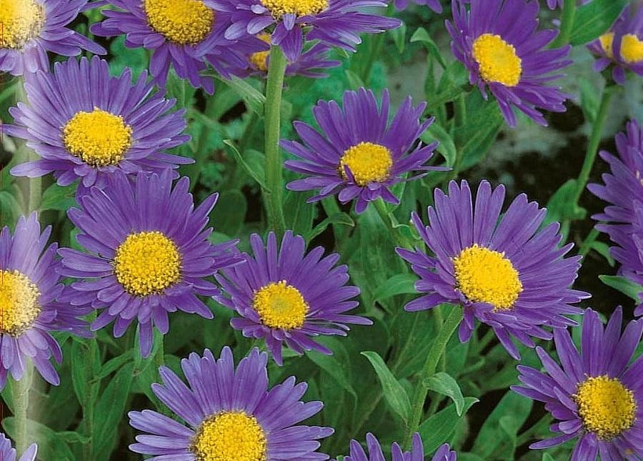 Семена и рассада астры альпийской Голиаф (Goliath) подходят для декорирования альпийских горок, оформления передней линии миксбордеров, формирования бордюров. Высота взрослого растения не превышается 25 см. Его стебли и листья имеют легкое опушение. Период цветения приходится на май-июнь, в это время распускаются небольшие (от 3 до 5 см в диаметре) цветы с фиолетовыми лепестками и желтой серединкой.