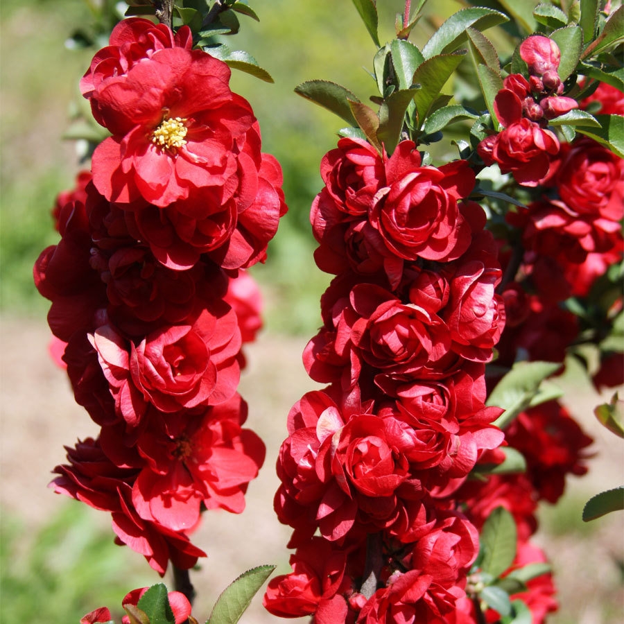 Саженцы Айвы превосходной Скарлет Шторм (Chaenomeles superba Scarlet Storm) – зимостойкий лиственный кустарник с зелеными заостренно-овальными листьями и крупными красными цветами, распускающимися в мае. Аромат цветов слабый, приятный, привлекающий насекомых. А их расположение практически полностью скрывает побеги в период цветения. Культура Chaenomeles superba Scarlet Storm достигает 120 см в высоту и 60 см в диаметре. Для ее посадки выбирают солнечный участок, защищенный от ветра. Нежелателен застой вод и и пересыхание почвы. Для обильного цветения требуются суглинистый или супесчаный грунт с низким уровнем кислотности.