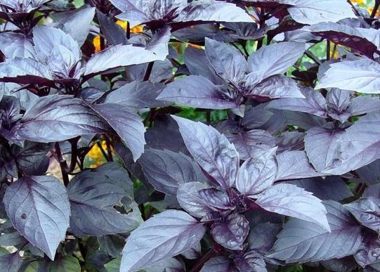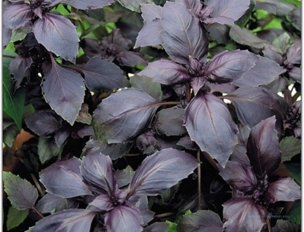 Семена базилика "Блек Шторм" (Blek Shtorm) превращаются в растение высотой 25-30 см. Листья гладкие, глянцевые, блестящие, сине-фиолетового цвета, по краям слегка пильчатые. Их длина не превышает 4-5 см, а ширина – 1,5-2 см. Соцветия красно-фиолетовые. Получение богатого урожая обеспечивает рассадный способ выращивания. Посев проводят за 2 месяца до высадки растений в грунт. Оптимальная температура для появления всходов и нормального развития культуры – 20-25 градусов. Цвет растения интенсивно сине-фиолетовый. Зелень обладает сложным ароматом – маслянисто-корично-имбирным, очень интенсивным.