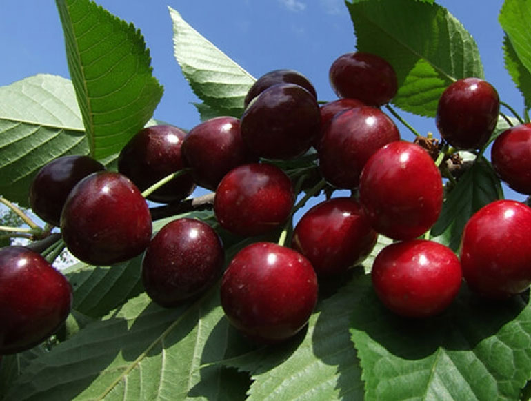 Саженцы черешни Ленинградская черная и крупномеры вырастают среднестволовым деревом высотой до 3-4 м, ветви раскидистые малолиственные. Обладает устойчивостью к клещам, тле и болезням. Скороплодность (на 3 год), урожайность в сезон высокая до 40 кг с дерева , созреваемость ягод неравномерная (с 16-20 июня и июль). Осыпаемости нет, ягоды могут висеть на дереве до сентября. Внешне походят на черно-бордовую вишню с ярким черешневым вкусом, весят 3-5 г. Требуют дополнительно деревья - опылители сорта Ипуть, Фатеж. Преимущества сорта: