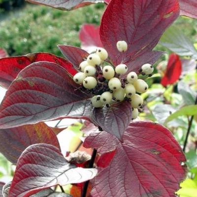 Осенняя окраска листвы : пурпурно-розовый, побеги красные, компактный