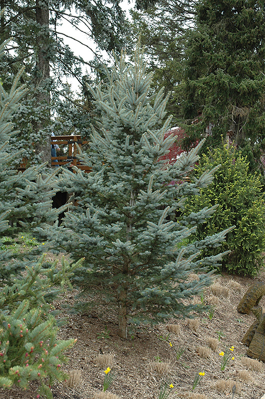 Саженцы ели голубой Изели Фокстейл (Isely Foxtail) эффектные хвойные елочки с правильной конусной формой кроны, словно подернутой сизой дымкой. Ветви под легким углом стремятся вверх. Свое название «лисий хвост» сорт ели голубой Изели Фокстейл получил из-за укороченных хвоинок на концах побегов. Ветки крупномеров выглядят объемно, крона очень густая. Высота взрослой ели 10-12 м. Декоративные коричневые шишки отличаются волнистыми чешуйками.