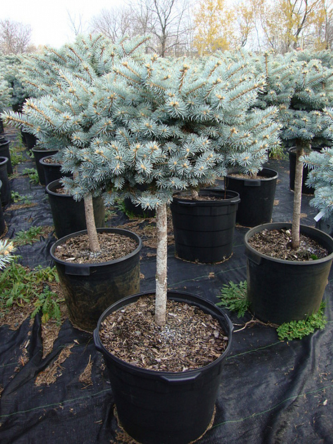 Элегантная и изысканная ель колючая глаука глобоза в виде штамба - настоящее украшение любого сада. Ее ствол, достигающий высоты до 3 метров, обрамлен яркими серебристо-голубыми иголками, которые сохраняют свой цвет круглый год. Форма листьев растения уникальна и привлекает внимание своей изящностью.