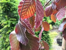 Саженцы Бука лесного Пёрпл Фонтейн (Fagus sylvatica) – декоративное дерево, которое ценится ландшафтными дизайнерами и садоводами за необычную форму и расцветку листьев. Purple Fountain вырастает до 5 м высотой. Диаметр кроны не превышает 2 м. Дерево с плакучими ветвями имеет колоновидную форму с зонтичной верхушкой. Эллиптические листья Purple Fountain отличаются глубокой красной расцветкой. Эта зимостойкая культура любит солнечные участки, но выдерживает полутень. Отсутствие света приводит к плохому росту и низкой пигментации листьев на нижних ветвях. Также для высаживания выбирают глинистые плодородные почвы с постоянным уровнем почвенных вод.