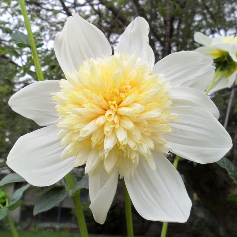 Георгина анемоновидная платинум блонд - это изысканное растение с необычайно нежными цветками, словно фарфоровыми. Ее кремовая серединка с белой юбочкой создает впечатление изысканности и изящества. Этот сорт георгины отличается высокой морозостойкостью, что делает его идеальным выбором для садов в зонах 4 и выше. Растение достигает высоты до 110 см, что позволяет использовать его как в групповых, так и в одиночных посадках. Листья георгины зеленого цвета, что придает ей свежий и яркий вид в течение всего летнего сезона.