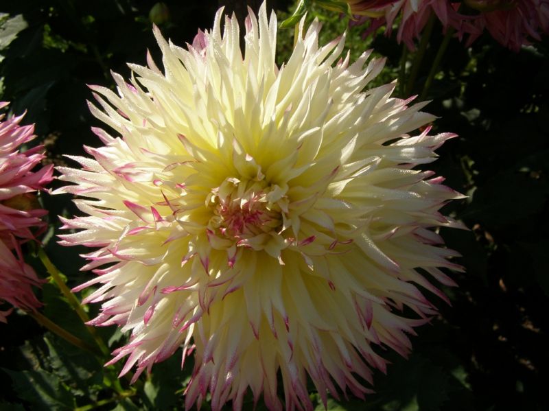 Окраска цветка : Светло-желтая с бело-розовыми кончиками и тонкой лилово-розовой каймой