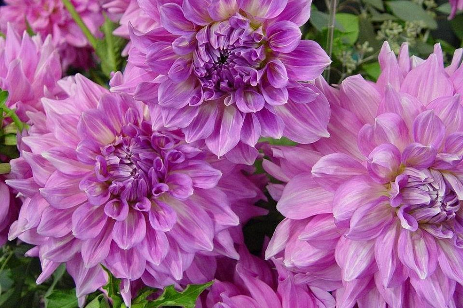 Рассада георгины декоративной Алмандз Джой (Dahlia decor Almand Joy) понравится любителям очень крупных цветов. Растение высотой до 120 см цветет с июля по октябрь и радует глаз необычными нежными шарообразными цветами. Диаметр каждого цветка до 25 см, середина чисто-белая, а концы лепестков нежно-сиреневые. Цветы чем-то напоминают кремовые украшения на торте, в комплекте с темной зеленью производят неизгладимое впечатление. Они предпочитают хорошо освещенные и защищенные от ветра места, так как столь крупные цветки при сильном ветре достаточно тяжело удержать. Идеальны в смешанных посадках и срезанных букетах для помещений, не имеют запаха.