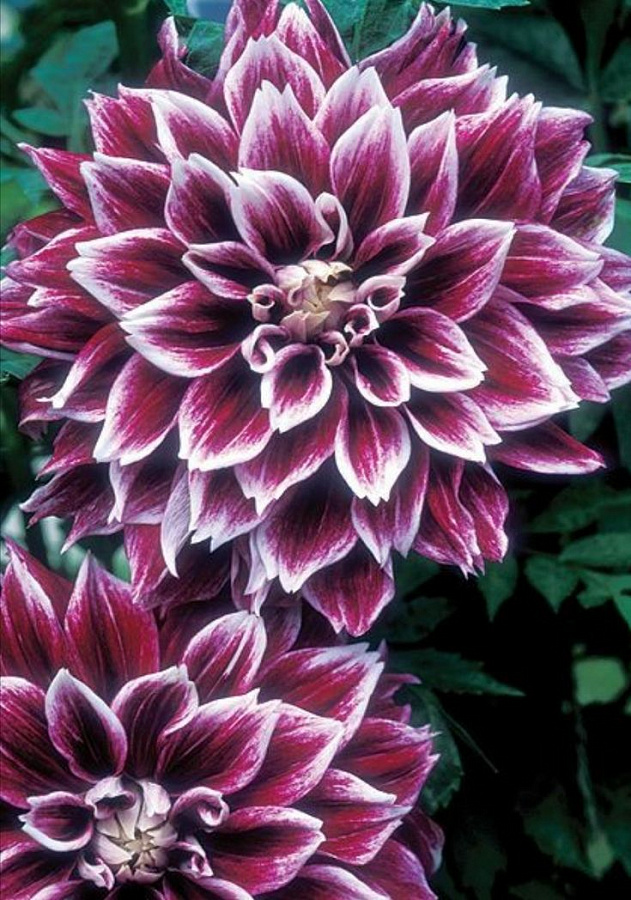 Георгина декоративная "Селлвуд Глори" - это великолепное растение с темно-бордовыми цветками и белыми кончиками, которое поразит вас своей красотой. Ее стебель прочный и устойчивый, а размеры растения позволяют ему вырасти великолепным и внушительным. Листья георгины имеют интересную форму, что делает ее еще более привлекательной для глаз.