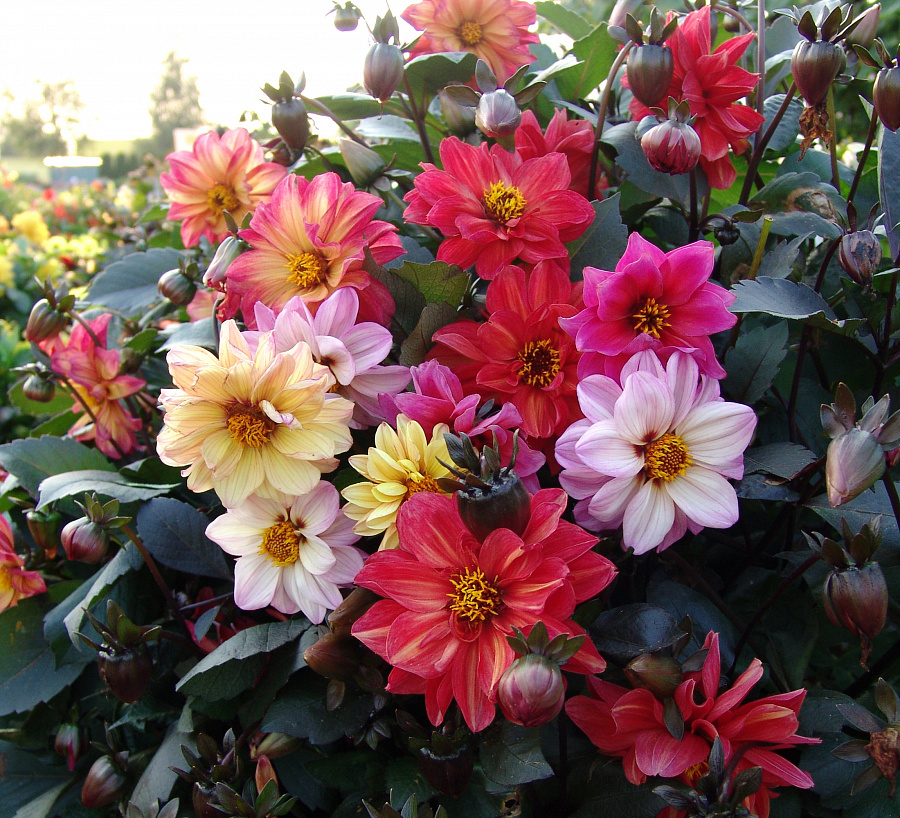 Семена георгин "Дети Кардинала" высевают на рассаду в апреле. Всходы появляются через 7-14 дней при температуре 18-20 градусов. В мае — начале июня растения уже можно высаживать на постоянное место в сад. Высота культуры около одного метра. Поэтому георгины "Дети Кардинала" идеально подходят для оформления бордюров и создания цветущей изгороди. Листья культуры темно-бронзовые. Цветочки среднего размера, окрашены в оранжево-красный цвет. Период цветения длится с июля до сентября. Растение можно выращивать для составления красочных летних букетов.