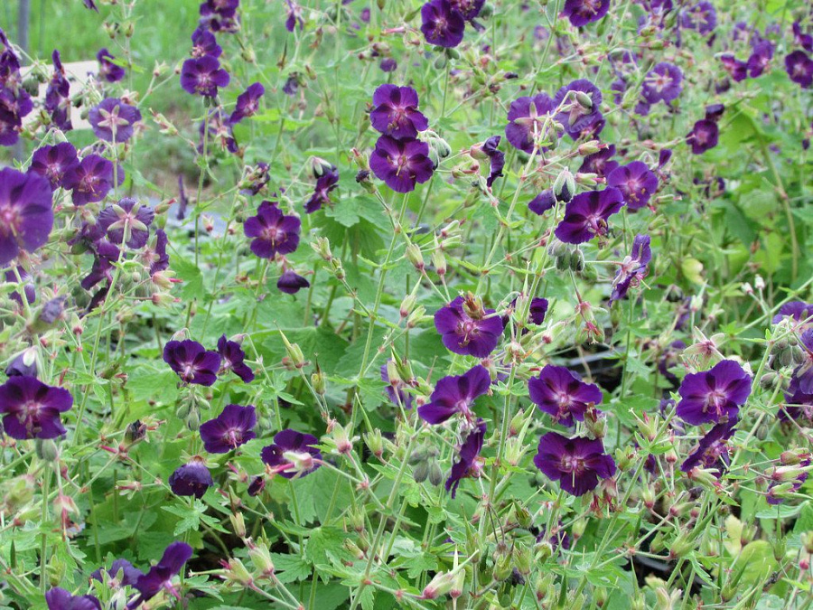 Саженцы герани Равен (Raven) - это очень выносливый сорт. Отлично подходит для тенистого краю бордюров, посадки вокруг дома. Цветки темно-фиолетовые или бурые с черным отливом и с длинными тычинками. Они в соцветиях на ветвистых стеблях и возвышаются над плотными насыпями мягких листьев зеленого цвета. Саженцы герани Равен хорошо растут в тени на средних почвах (средних суглинках). Кроме того земля должны быть рыхлой, плодородной, с хорошим дренажем. Высаживать лучше в полутень и соблюдать надо умеренную влажность.