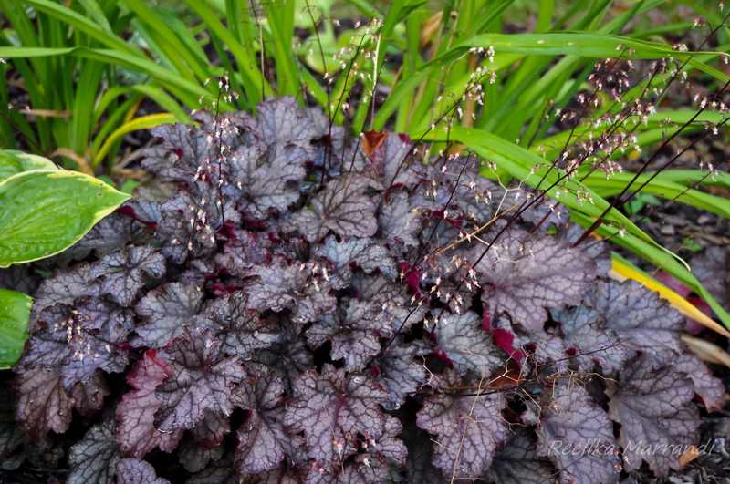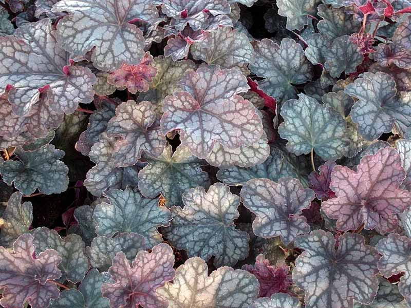 Рассада гейхеры Вельвет Найт (Velvet night) порадует необычной окраской и неприхотливостью к условиям выращивания. Листва многолетника имеет бордовую окраску с серебристым напылением и бархатную поверхность. В июле куст расцветает мелкими белыми соцветиями-метелками.