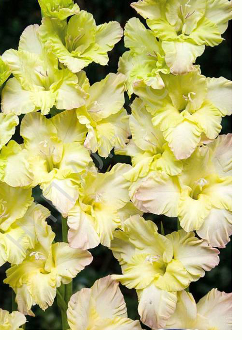 Луковицы гладиолуса гибридного Bridget сажают весной в ряды или группами на солнечное место на расстоянии 25-35 см в глубокие лунки. Высота взрослого растения вместе с соцветиями составляет от 100 до 150 сантиметров. Стебель вертикальный, не ветвящийся. Листья длинные, линейные, насыщенно-зеленые. Лепестки цветков сильно волнистые, светлого желто-зеленого окраса, не выгорают на солнце. У каждого бутона шесть красиво изогнутых наружу лепестков. Диаметр цветков до 15 сантиметров. Соцветие гладиолуса гибридного Bridget пышное, колосовидное, на нем может распуститься до 10 цветков.