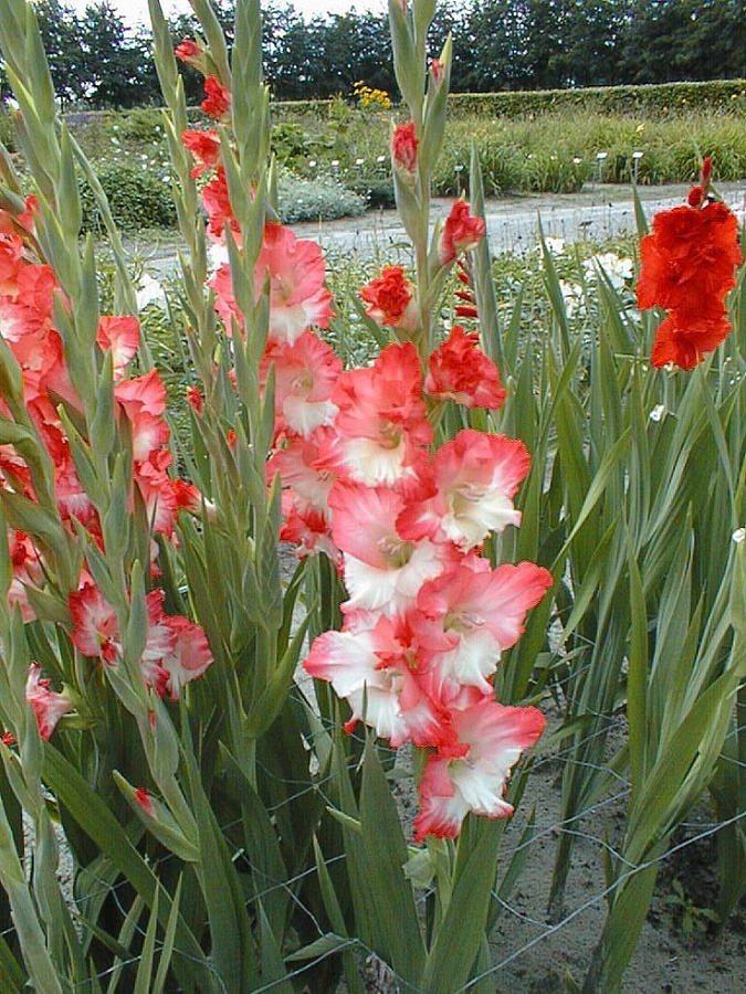 Луковицы гладиолуса гибридного Pink Lady не очень требовательны к условиям роста. Место высадки следует выбирать хорошо освещенное, защищенное от ветров. Почва подходит легкая, садовая, без застоя влаги. Стебли растения крепкие, прямостоячие, мясистые и покрыты продолговатыми, тонкими, ланцетными, зелеными листьями. Высота растения варьируется от 110 до 150 см. Цветки гладиолуса гибридного Pink Lady крупного размера, до 11-14 см в диаметре, лососево-розового окраса, с белой серединкой.