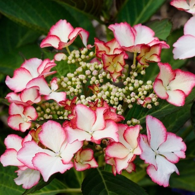 Гортензия крупнолистовая Лав ю Кисс - это волшебное растение, способное принести в ваш сад неповторимую красоту и уют. Ее ствол прочный и изящный, а размеры достигают высоты до 200 см, с диаметром цветка до 20-25 см. Листья гортензии крупнолистовой Лав ю Кисс имеют ярко-зеленую окраску и уникальную форму, что делает растение еще более привлекательным.