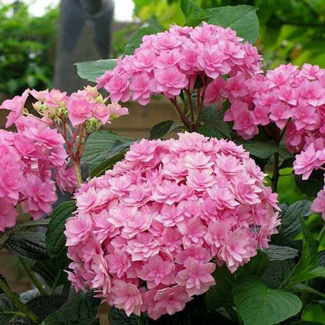 Гортензия крупнолистовая романс пинк - это великолепное растение с изысканными розовыми цветами, которые будут радовать ваш взгляд в течение двух месяцев весной и четырех месяцев осенью. Ее высота может достигать 150 см, а диаметр цветка - 20-25 см, что делает ее настоящим украшением любого сада. Ярко-зеленые листья гортензии создают прекрасный контраст с розовыми цветами, придавая растению особый шарм.