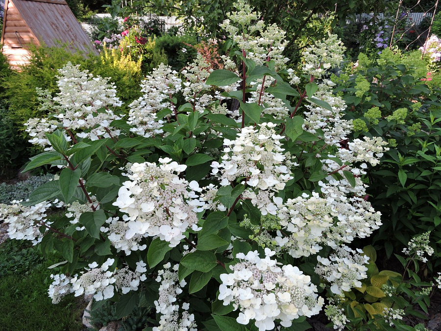 Саженцы гортензии метельчатой Дарлидо (Darlido), которая отличается бесподобно красивыми и долго цветущими розоватыми соцветиями, малотребовательны. Этот невысокий кустарник имеет густую крону, а отрастающие побеги красно-бурые, немного опушенные. Темно-зеленые листочки слегка заостренные с бархатистой поверхностью. Цветет кустарник с середины и до конца лета. Крупномеры стоит высаживать на хорошо увлажненную почву в слегка затененные и ветрозащищенные участки. Гортензия метельчатая Дарлидо с успехом используется ландшафтными дизайнерами для создания популярных садов с непрерывным цветением.