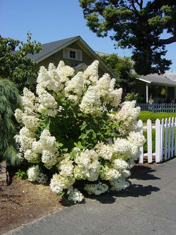 Саженцы гортензии метельчатой Силвер Доллар (Silver Dollar) со временем превратятся в восхитительный крупномер с серебристыми соцветиями. Осенью цветы обретают легкий розовый оттенок. Несколько кустов можно превратить в аллею или живую изгородь. Крона этого сорта гортензии может достигать двух с половиной метров! Ухаживая за крупномером, стоит помнить ряд правил: