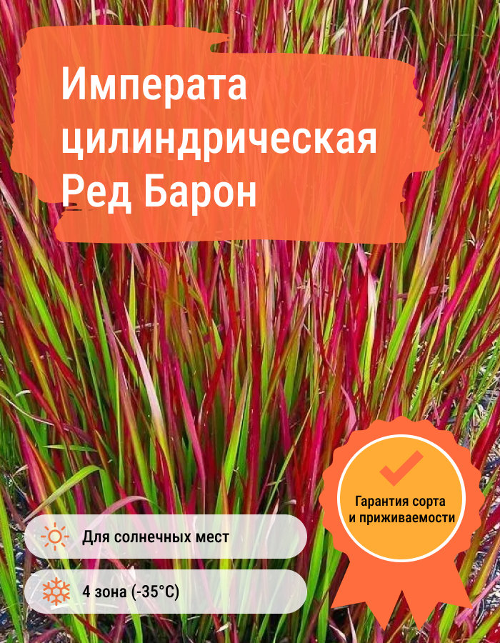 Рассада Императы цилиндрической Ред Барон (Red Baron) - злаковое растение с длинными листьями с необычным красноватым оттенком. Листовые пластины напоминают широкое лезвие ножа: они продолговатые с заостренными верхушками, располагаются поочередно, устремлены вверх, по текстуре жесткие. Молодые листья ярко-зеленого цвета у основания и с красноватыми верхушками, по мере роста рубиновый оттенок охватывает листовую пластину полностью. Существует ряд нюансов, которые следует помнить при высаживании: нужно удалять появляющиеся зеленые отростки, высаживать рассаду на открытых солнечных местах. Несмотря на то, что данный сорт будет расти и в полутени, лучше найти максимально жаркое место. Не переносит застойных вод. Может расти на супесчаных и суглинистых грунтах. Реакция может быть нейтральной, допускается слабокислая.