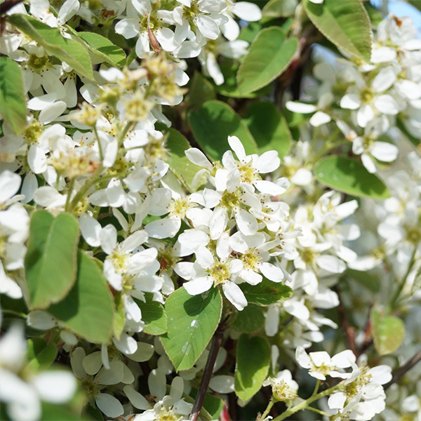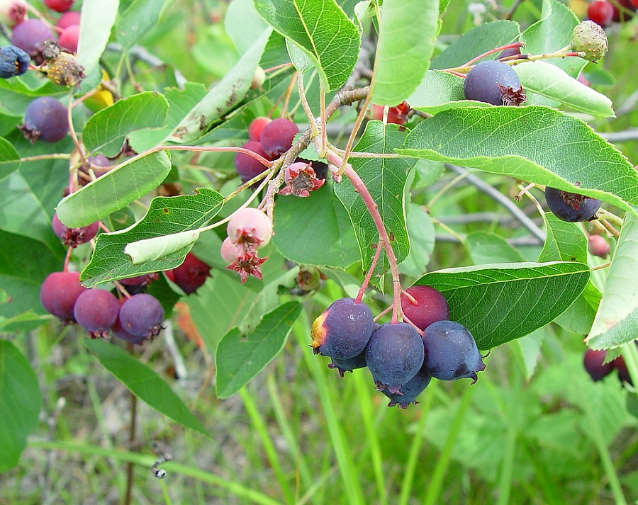 Ирга колосистая – многолетний кустарник с жизненным циклом около 30 лет, вырастает до 2— 5 м в высоту. Растение имеет прямые, тонкие, маловетвистые стволики. Молодые побеги сначала беловато-войлочно-опушенные, позже – они голые, пурпурно-коричневого цвета, блестящие. Кора темно-серого цвета, почти черная. Листья округло-овальные, яйцевидные, очередные, до 2,5 см. Их цвет – сначала серебристо-белый при распускании, потом темно-зеленый, а осенью – светло-желтый или красный. Цветет ирга в мае. Цветки двуполые, белого цвета, собранные в густые верхушечные щитковидные кисти по 5-8 штук. Плоды созревают в августе-сентябре (созревание неодновременное). Они мелкие, округлой формы, яблоковидные, размером с горошину. Окрас плодов сначала зеленый и красный (незрелые плоды), а потом — черный с сизым налетом (зрелые). Мякоть плодов сочная и сладкая, по вкусу напоминает корицу и изюм. Ирга колосистая имеет довольно много преимуществ по сравнению с прочими садовыми кустарниками. К таковым относятся: