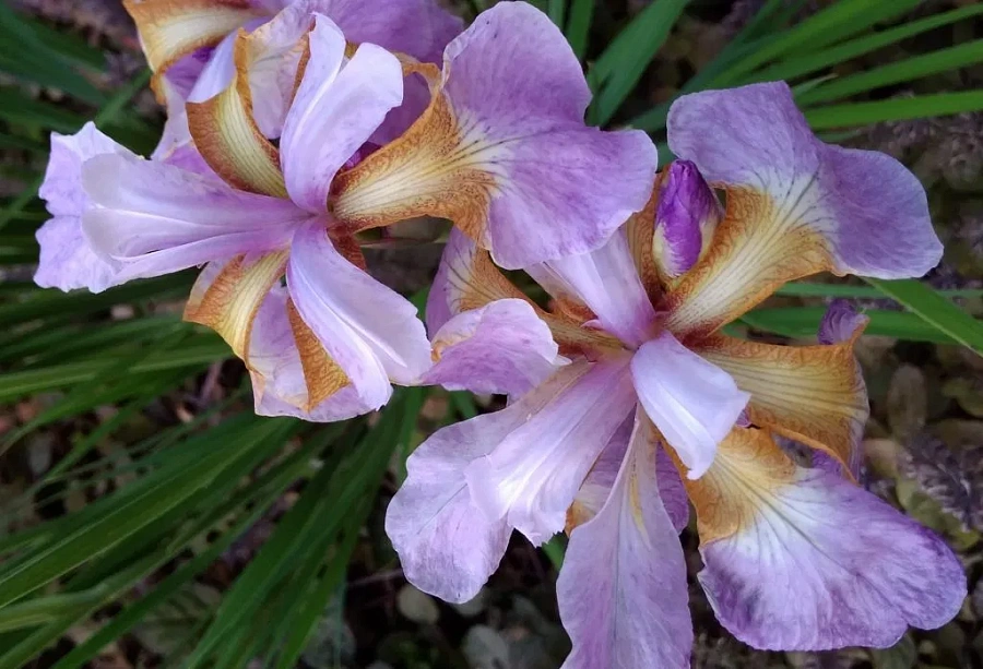 • листья зеленые. Ирис Kita-No-Seiza (Кита-Но-Сейза) дает цветы с полумахровыми лепестками в пастельных тонах. Лепестки получаются серебристо-сиреневого цвета с белыми тонкими прожилками и зелеными шартрезными пятнами у основания. Данный сорт семян хорошо себя чувствует во влажных садах или на мелководье пруда.