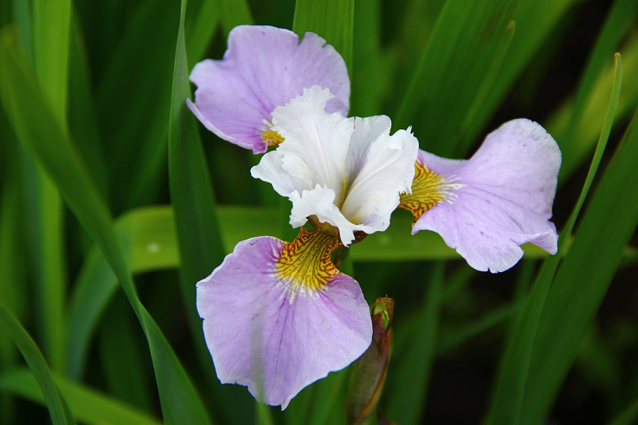 Рассада ириса сибирского Pleasure of May (Плежер оф Мэй) прекрасно сочетается с практически любыми другими растениями сада, и особенно выгодно выделяется на фоне декоративного кустарника. Цветки Плежер оф Мэй имеют элегантный бело-сиреневый оттенок, нижние лепестки сиреневые, середина цветка желтая. Ширина куста достигает 80 см, а высота 100 см. Период цветения – май-июнь. Семена нужно высаживать в марте, а рассаду в мае.