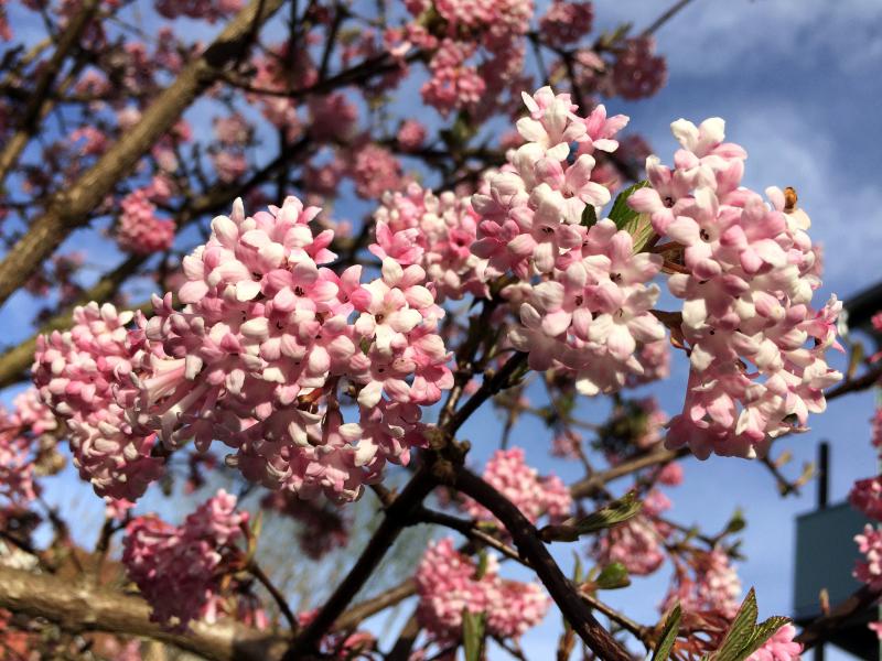 Саженцы калины боднатенской Даун (Dawn) – отличный вариант для оформления душистых садов и живых изгородей; украшения цветников и рабаток, солитерной посадки. Листья меняют цвет от бронзового до зеленого и бордового, а розоватые соцветия источают аромат ванили и сирени одновременно.