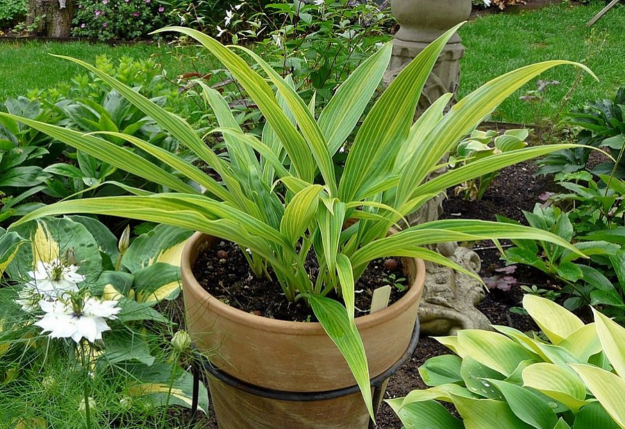Хоста Гибридная Хьюга Ураджиро (Hyuga Urajiro) необычное, экзотическое растение для вашего сада родам из Японии. Используется для высадки в садах, цветниках, альпийских горках, а также будет прекрасно смотрятся на вашей веранде. Куст компактный, не расползается, листья тонкие, ланцетные, острые, с изумрудно, зелеными и лаймовых линий. Одна из очень немногих хост с полосатым рисунком. А в середине – конце лета на кусте формируется несколько цветоносов с изящными лавандовыми цветами. Специалисты отмечают высокую декоративность растения. Характерные особенности растения:
