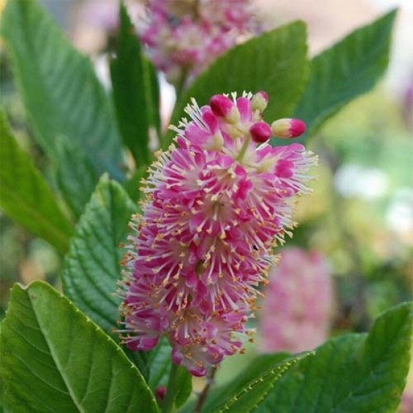 Саженцы клетры ольхолистной Пинк спайр (Clethra alnifolia, Pink Spire) покупают ценители цветущих декоративных кустарников. Высота взрослого растения достигает 2 метров. В июле растение распускается розовыми душистыми цветами, собранными в высокие соцветия, которые радуют красотой до сентября. Листва ребристая, зеленая, осенью приобретает желтый оттенок и долго не опадает. Сорт предпочитает хорошо освещенное солнцем, уютное место. Используется для формирования живых изгородей, защитных полос в саду. Растение морозостойкое, но в первые годы нуждается в укрытие на зимовку.