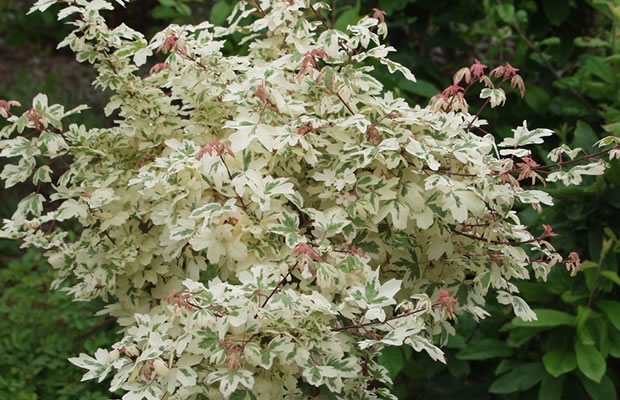 Саженцы Клёна полевого Карнивал (Carnival) представлены в виде дерева или кустарника, высота которого может достигать 5 метров. Крона густая, раскидистая и отличается своим необычным окрасом: каждый листок имеет салатово-зеленую сердцевину, которая вокруг украшена окантовкой кремово-белого цвета.