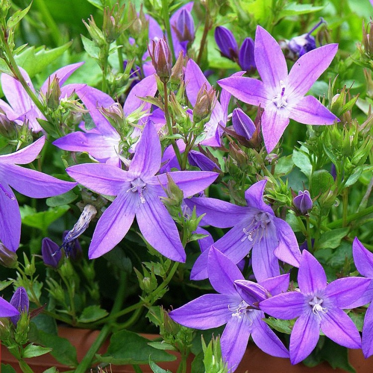 Рассада колокольчика пожарского очень хорошо разрастается и прекрасно зимует. Многолетник образует пышный ковер из сиреневых цветов-звездочек, за которыми буквально не видно листьев. Высота растения не более 20 см, а побеги разрастаются до 80 см. Применяется для создания любого цветника - от розария до полу тенистого декоративно-лиственного бордюра. Рассада колокольчика пожарского предпочитает легкую полутень с теплой, легкой и проницаемой почвой. Не выносит кислых почв и застоя воды. Полив требуется только при длительной жаре.