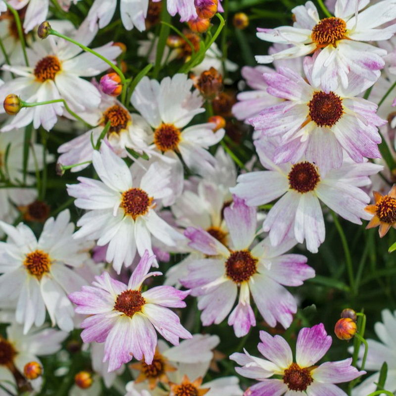 Рассада кореопсиса ланцетовидного Bloomsation Chameleon пользуется огромной популярностью у опытных и начинающих садоводов за неприхотливость и отличный внешний вид. Это растение отлично впишется в любую смешанную посадку. Оно представляет собой куст высотой до 60 сантиметров, состоящий из узкой листвы и длинных цветоносов. Летом распускаются нежные цветы с розовыми лепестками и коричневыми серединками.