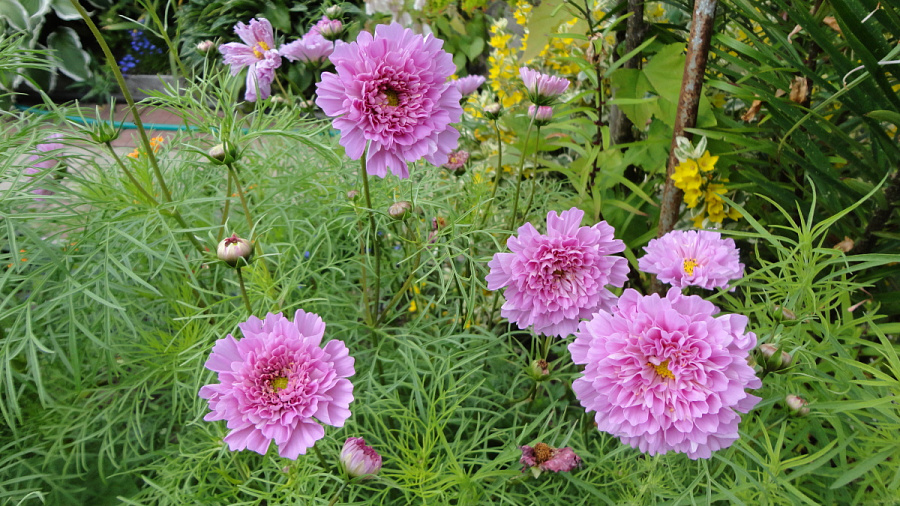 Космея махровая "Роуз Бонбон" - это изысканное растение с нежными розовыми цветками, которые будут радовать ваш взгляд в течение нескольких месяцев в году. Ее стебли прочные и прямостоящие, достигают высоты до 80 см, а диаметр цветка может достигать 10 см. Листья космеи имеют интересную форму и добавляют декоративности этому растению.
