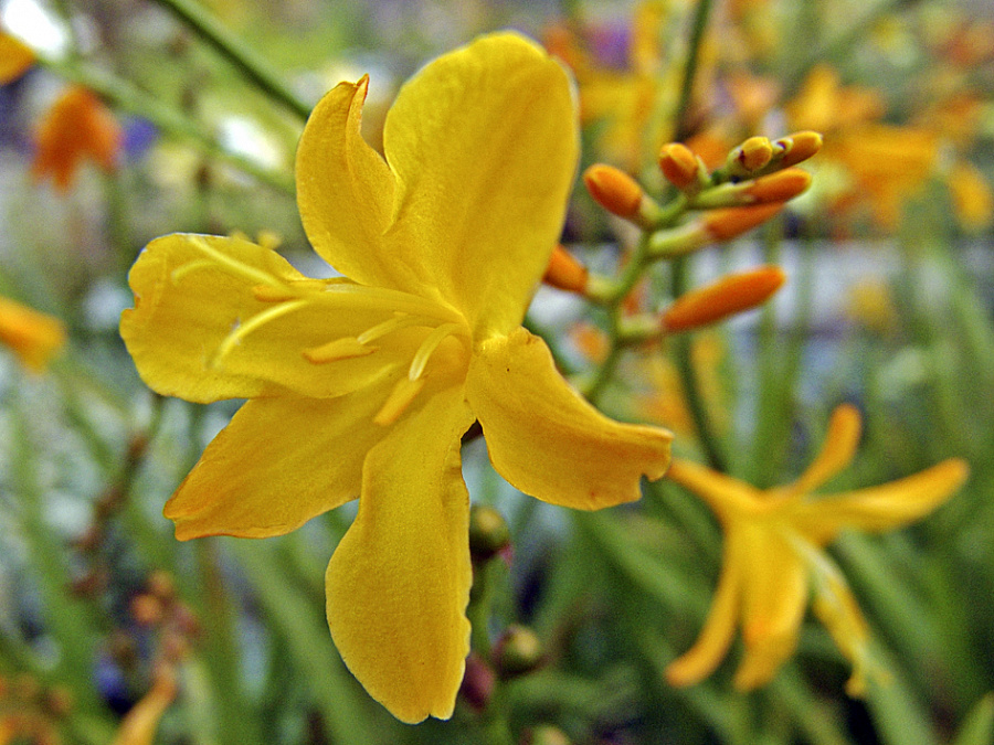 Рассада крокосмии обыкновенной George Davidson сочетает в себе неприхотливость и эффектный внешний вид. Этот сорт пользуется популярностью у дизайнеров ландшафтов, а также садоводов. Во время цветения на растении распускаются невероятные цветы ярко-желтого оттенка. Цветение начинается в июле и длится до сентября. Крокосмия обыкновенная George Davidson обладает засухоустойчивостью, поливать это растение следует по мере необходимости, чтобы не допустить загнивания корневой системы. Почва должна быть легкой, рыхлой и питательной. Этот сорт отлично зимует без дополнительного укрытия.