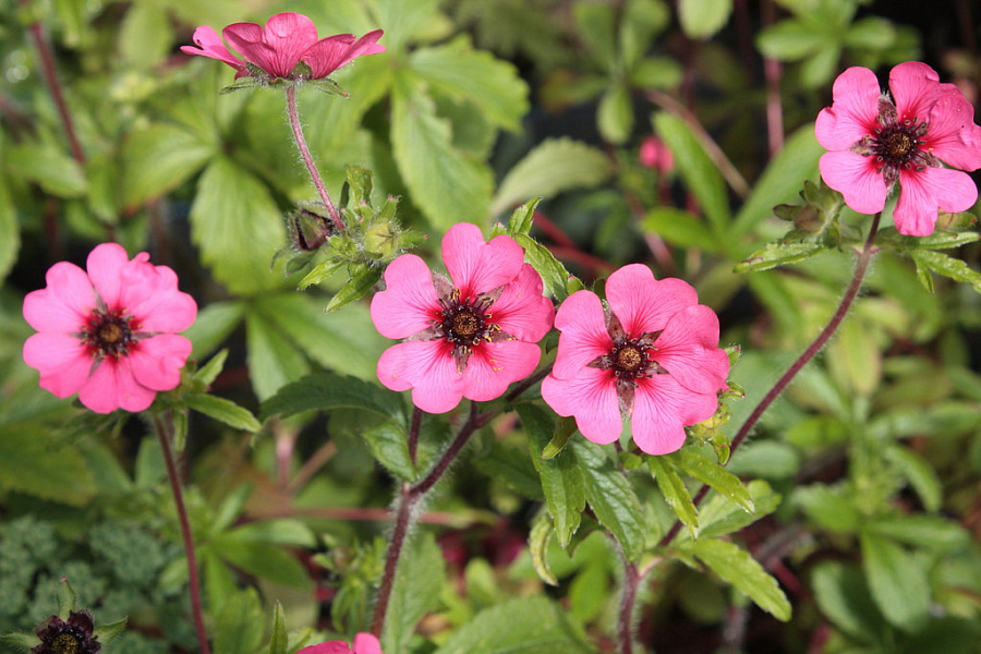 Рассада лапчатки Рон Мак Биз (Ron McBeath) вырастает около 30 см в высоту. Обладает крупной листвой пальчатой формы. Стебли прямые и пурпуровые. Цветение припадает на июль-август. Цветы около 3 см в диаметре светло-розового окраса с более темными жилками. Плюсы лапчатки Рон Мак Биз: