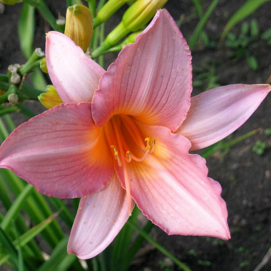 Окраска цветка : Нежно-розовая с жёлтым горлом