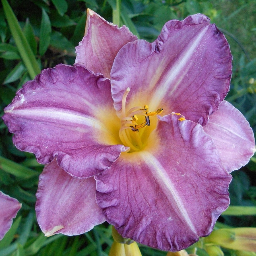 Окраска цветка : ОЧЕНЬ МНОГО ЦВЕТОВ! Цветок пурпурно-сиреневый с желто-зеленым горлом и белесыми полосками вдоль центра лепестков, края лепестков гофрированы