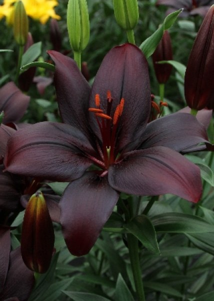 Лилия азиатская блэк чарм - это великолепное растение, которое поразит вас своей изысканной красотой. Ее темно-бордовые цветки, приближающиеся к черному оттенку, создадут загадочную и утонченную атмосферу в вашем саду. Высота этого растения может достигать 80-100 см, что делает его заметным акцентом в ландшафте. Листья лилии имеют интересную форму, что добавляет ей изюминку.