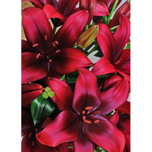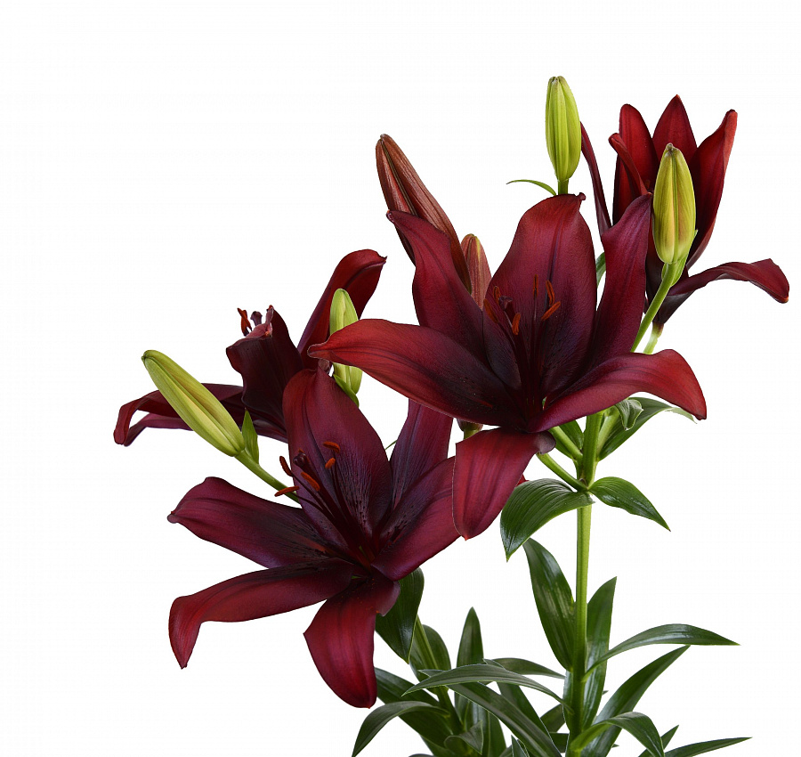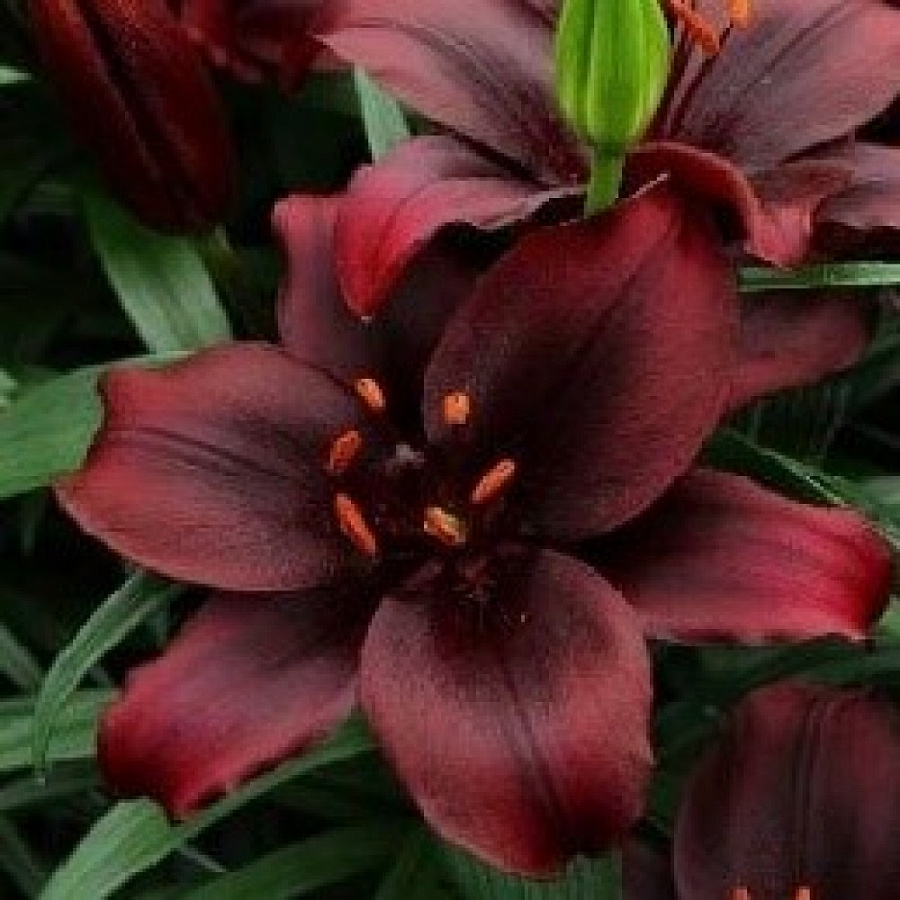 Луковицы азиатской лилии Форейнер (Lilium asiatic Foreigner) выделяются среди других сортов насыщенной окраской. Формируют кустик высотой около 1 м. Диаметр цветков достигает 15 см. Окраска темно-красная, темнее ближе к центру. Пыльники бронзовые. Лепестки атласные, на кончиках немного загнуты внутрь. Время цветения – июнь и июль. Азиатская лилия неприхотлива в выращивании, засухоустойчива, выдерживает понижение температуры до -40 °С. В ландшафтном дизайне используется в групповых посадках, а также для срезки. Цветки сохраняют свежесть в букетах и на клумбе от 5 до 12 дней.