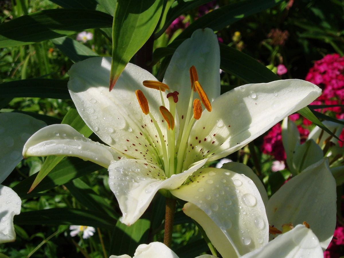 Луковицы лилии азиатской Сансер (Sancerre) – благородный сорт с изысканными белыми цветами роскошно смотрится в саду и в букете. Крупные овальные лепестки с заостренными краями слегка откидываются назад и покрыты коричневыми крапинками. Цветы завязываются по несколько штук на одном стебле. Нежно-изумрудная листва выгодно оттеняет белизну лепестков.