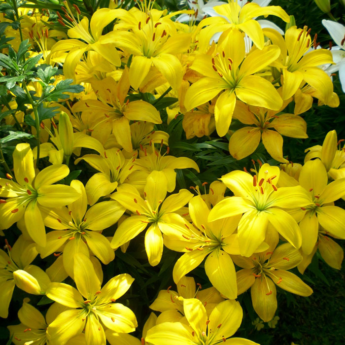 Саженцы и рассада лилии азиатской Жиронде (Lilium) способны оживить даже самый бледный цветник экзотическим канареечным окрасом своих цветов. Ненавязчивым дополнением служит зеленоватая сердцевина и крупные коричневые тычинки. Высокие стебли просто укрыты массивными цветками и бутонами. Аромат приглушенный, иногда может показаться, что эти цветы вообще не издают запаха.
