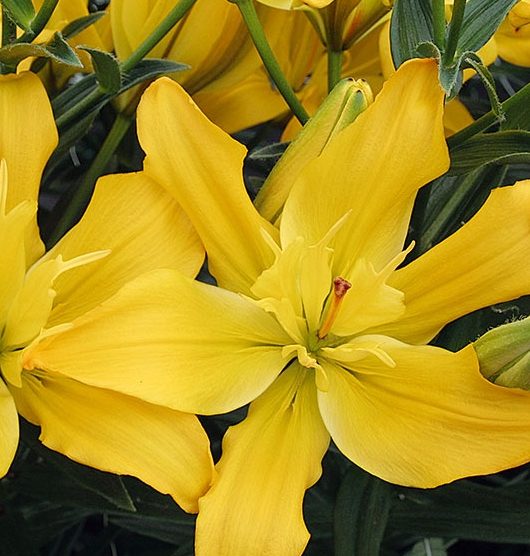 Луковицы лилии Kensington предпочитают солнечные места или полутень, рыхлые, питательные почвы. Цветет этот сорт достаточно рано — с начала и до середины лета. Вегетационный период составляет 95 дней. Цветки нарядные, диаметром до 15 см, направлены вверх. Состоят они из насыщенно-желтых, волнистых лепестков, расположенных в три ряда. Высота растения достигает 120 см. Листья лилии Kensington толстые, блестящие, небольшого размера и насыщенно-зеленого окраса. Сорт неприхотливый, морозоустойчивый.