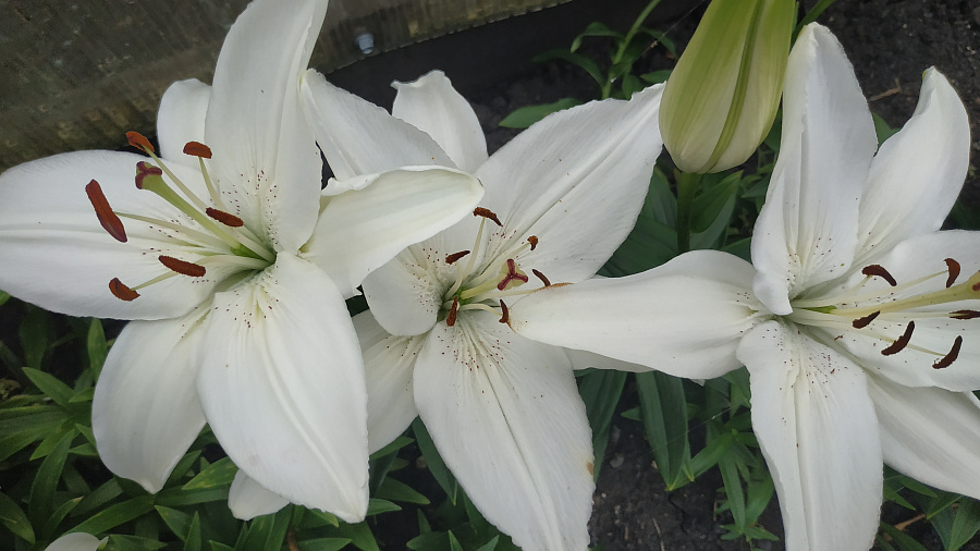 Окраска цветка : Высоко рентабельная чисто-белая лилия. Крапа нет, в горле слегка зеленоватая. Пыльники коричневые, рыльце светлое, плотная фактура лепестков
