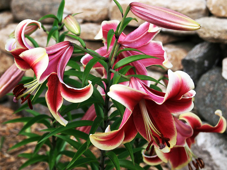 • Окраска цветка : красно-розовый с широким кремово-желтым кантом