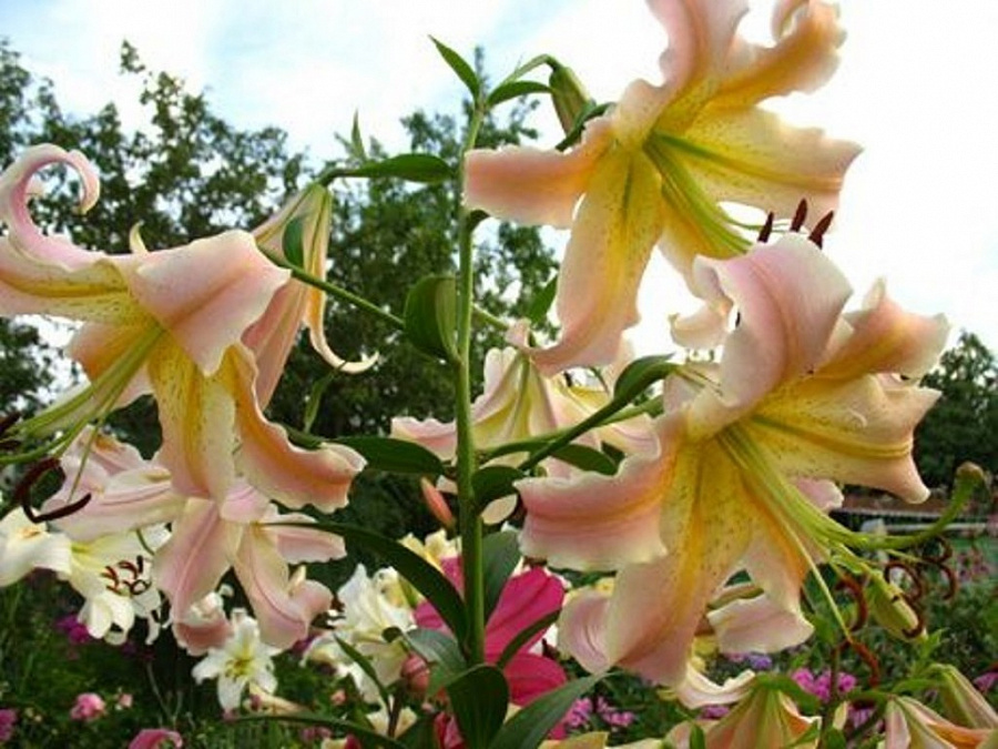 Лилия от-гибрид "Элюзив" - это волшебное растение, которое поразит вас своей красотой и изысканностью. Ее стебель достигает высоты от 120 до 180 см, а цветки радуют глаз лососево-розовым оттенком с желтым центром и белым контуром, украшенным мелким крапом. Листья лилии имеют зеленую окраску и прекрасно сочетаются с цветами.