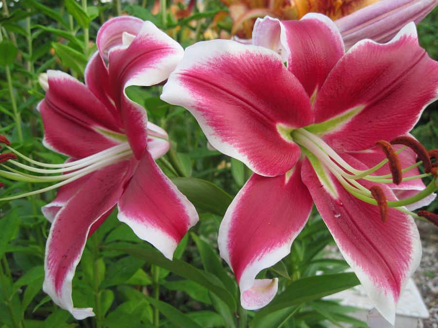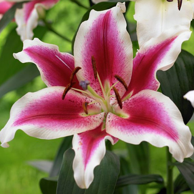 Лилия от-гибрид Мисс Марпл - это великолепное растение с малиновыми цветками, украшенными широким желтовато-кремовым кантом. Ее высота может достигать 130-150 см, а размер цветка равен 25 см. Листья лилии имеют зеленую окраску и интересную форму. Это растение предпочитает солнечные и полутенистые места для посадки, идеально подходит для газонов, групповых посадок и миксбордеров.