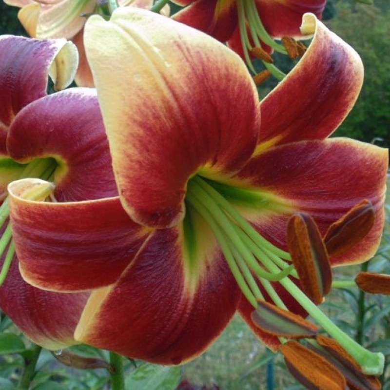 Лилия от-гибрид Red Morning - это великолепное растение с насыщенно-винными цветками, украшенными желтыми широкими полями. Ее высота может достигать до 120 см, а размер цветка радует глаз своими 18-20 см. Листья лилии имеют зеленую окраску и прекрасную форму. Это растение предпочитает солнечные и полутенистые места для посадки, идеально подходит для газонов, групповых и одиночных посадок.